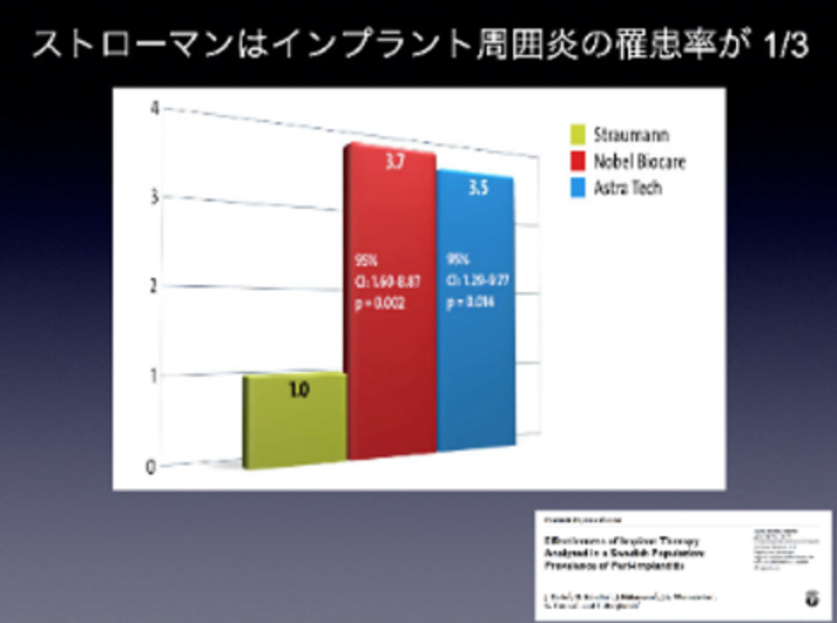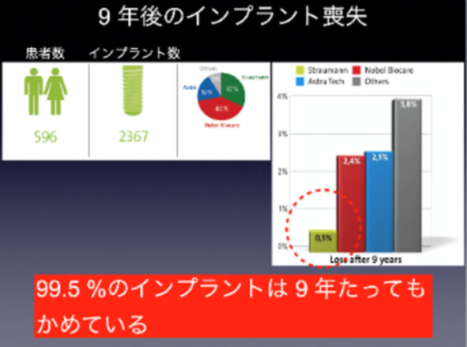 ストローマン社製インプラントは、骨との結合が非常に良く、また、トラブルの出にくいインプラントであることが分かっています。