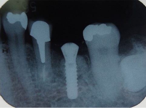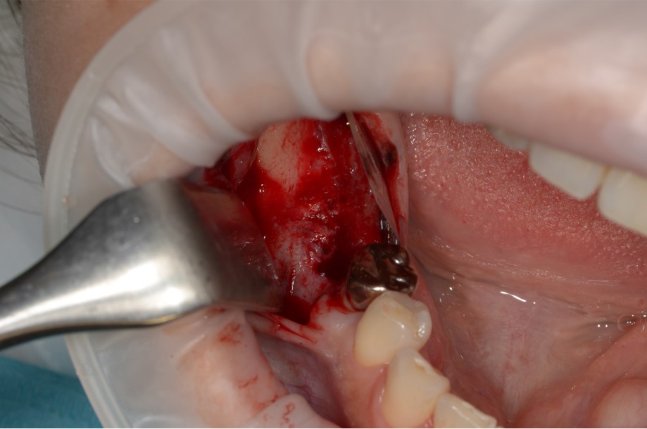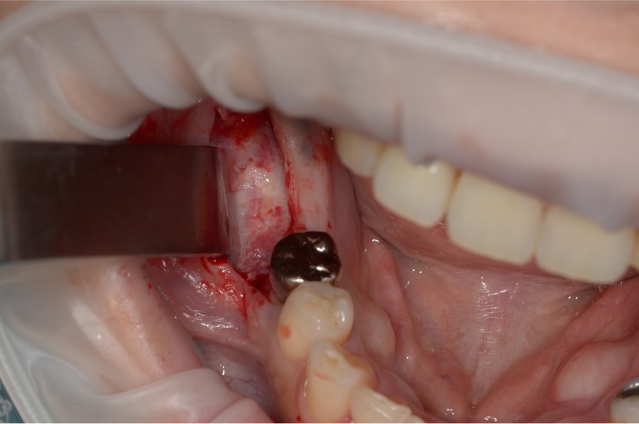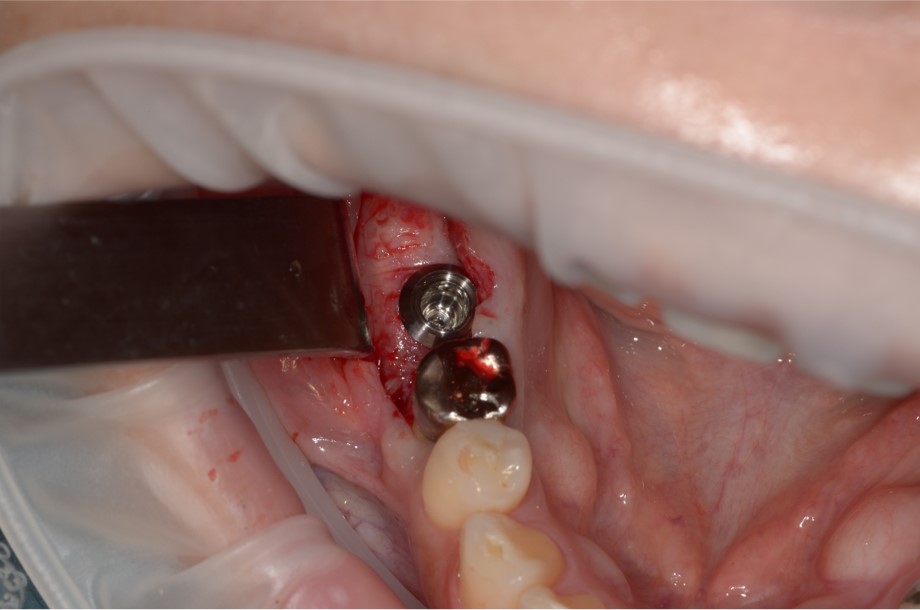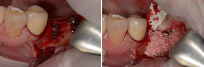 インプラントを埋入すると部分的に露出したので人工骨で覆いました。
