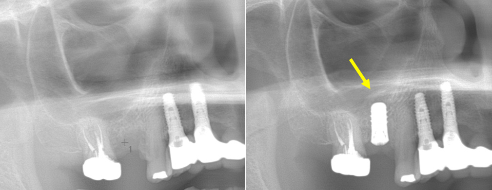 上顎の奥歯の部分に骨を作る処置です。(詳しくはこちら)。 |